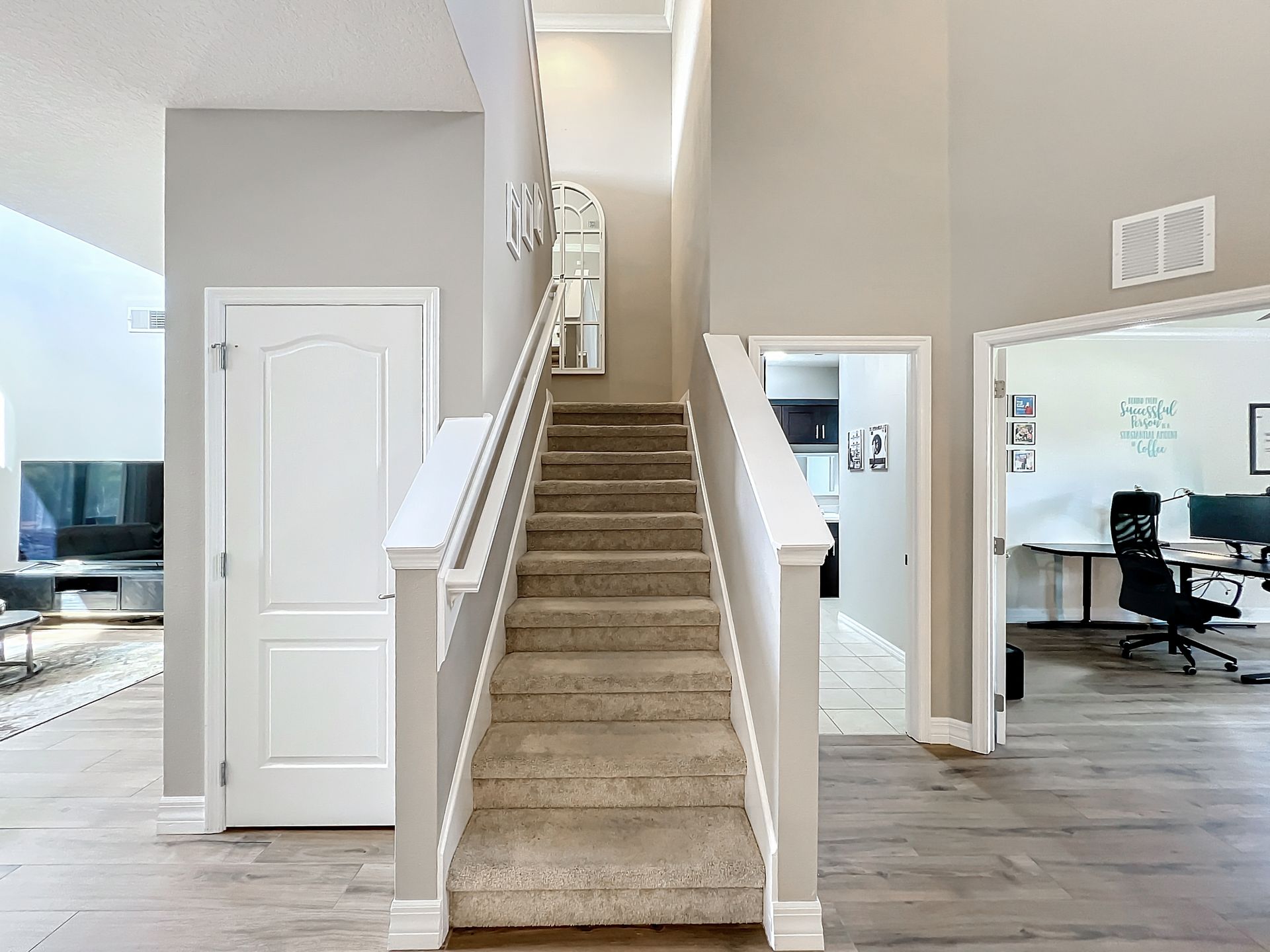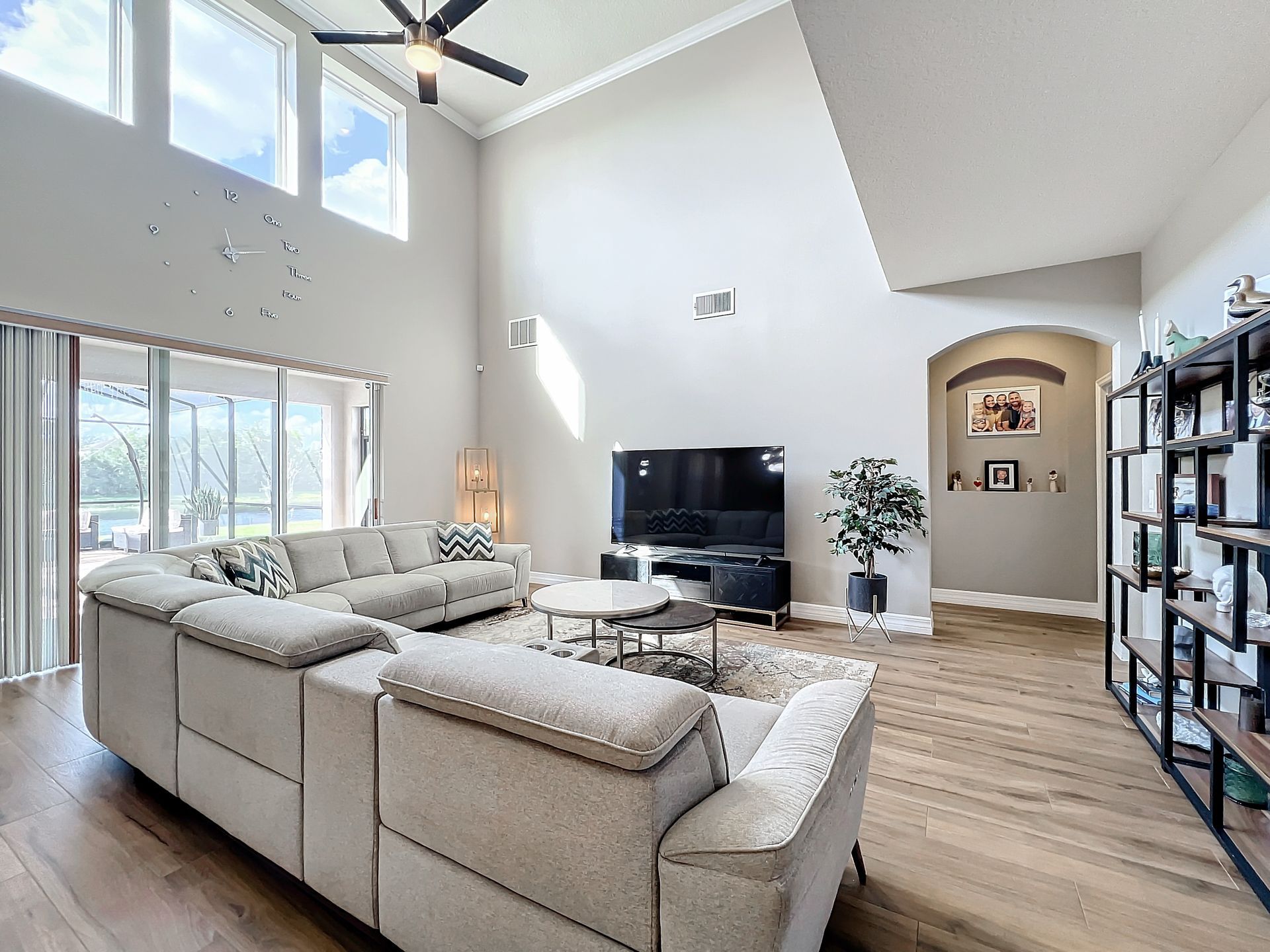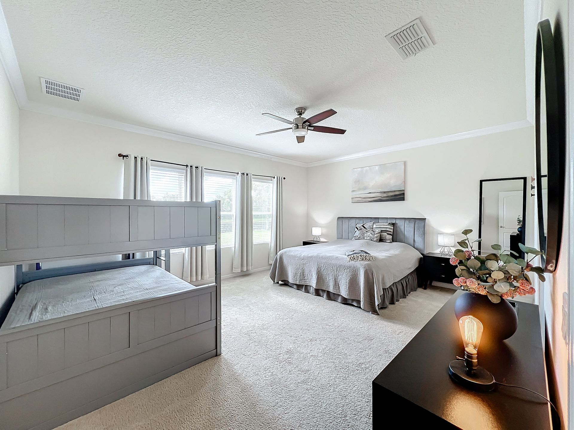 Experience luxury in this meticulously maintained home featuring a grand Great Room, gourmet kitchen with butler’s pantry, and a spacious master suite with walk-in closet—all on the main floor. Upstairs offers flexible living with a game room, family room, and additional bedrooms. Relax on your covered porch overlooking serene canal views, all in the coveted Sawgrass Plantation community, close to Lake Nona, shopping, and more.